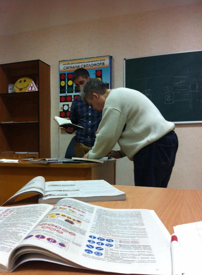 Коли Ви вперше приходите до нас, то треба буде заповнити бланк заяви та надати копії документів для реєстрації в навчальну групу.Першим етапом є вивчення правил дорожнього руху в зручному форматі (онлайн через програму Zoom, або в обладнаних учбових класах), після чого складається іспит в ТСЦ.